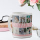 Modern photo collage coffee mug featuring a photo collage, which are easily downloaded from your phone or computer, the text 'Best Mom Ever' in elegant calligraphy script, a message and name/s. A beautiful keepsake gift for Mom on Mother's Day, Birthdays or Christmas.