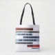 This tote features a Bible verse emphasized with bold, modern color block stripes. It says,