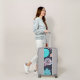 Modern Big Blue Flower Pattern Pink Monogram Luggage