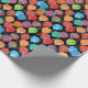 Festive balloons decorated with colorful fractal patterns in shades of red, blue, orange, purple and green on a black background, make this wrapping paper perfect for a birthday gift.