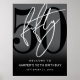 Modern Black and White 50th Birthday Welcome Sign. Celebrate fifty years in style with this bold and contemporary sign featuring a large black “50” with a handwritten script-style white “Fifty” at the top for a sleek, minimalist look.