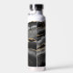 Modern Black Agate Gold Glitter Script Monogram Water Bottle