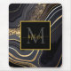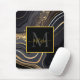 Modern Black and Gold Marbled Monogram Mouse Pad