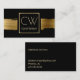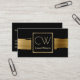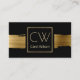 Modern business card done in black with graphics of a gold paint brush stroke, across the middle. A black and gold square text area, on the front, has a two letter monogram and text. Personalize the text, on the front and back of the card, to suit your business needs.