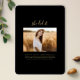 Announce your graduation with this modern and elegant black and gold script 4 photo collage graduation announcement card. The unique calligraphy script adds a touch of sophistication to the design, while the simple double-sided layout allows you to feature four of your favorite graduation photos. This card is perfect for high school seniors and college/university graduates who want to share their achievements with family and friends. Order now and make your graduation announcement unforgettable!