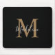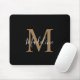 Modern Black and Gold Script Monogram Mouse Pad