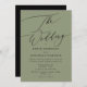 Plain white envelopes are included with paper invitations and will come to fit the invitation size you select. If you don’t need the envelopes, you may choose to not receive them by selecting the dropdown below "Envelopes" and choosing "None." If you’d like to have a design on your envelopes, you can browse all of these available envelopes to find the design that complements your Modern Black And Sage Green Simple Wedding Invitation.