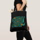 A classy bag featuring a modern black and teal fractal pattern. If you look closely you will see a flower like design with leaves.