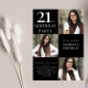 Modern black and white 3 photo 21st birthday invitation