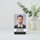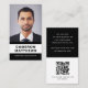 Black and white or custom color, modern, professional business card design with template fields for name, company name/title, photo, QR code and contact information. Change colors, move and resize elements with the customization tool.