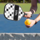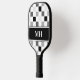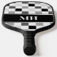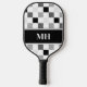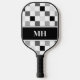 Modern Black and White Checkered Initials Monogram Pickleball Paddle