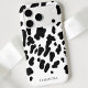 This Modern Black and White Cowhide Pattern Western iPhone 17 Pro Case features a bold black-and-white cowhide pattern with an all-over spotted design that feels playful, modern, and eye-catching. The clean white background keeps the look fresh and stylish, while the personalized name at the bottom adds a simple, thoughtful touch. Perfect for everyday use, this case is a fun way to protect your phone while showing off your love for trendy animal prints and personalized details.