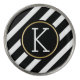 Elegant modern black on white diagonal stripes with customizable monogram and touch of gold.