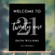 A simple modern 21st birthday sign featuring elegant calligraphy script typography and minimalist design.