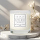 Custom-designed engagement candle gift for couples featuring modern black and white candle label design with personalized gift message.