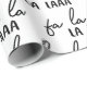 Modern Christmas wrapping paper featuring a modern pattern of "Fa la la la la" in whimsical typography.
