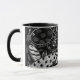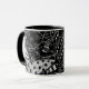 Modern black and white decorative whimsical fish patterned mug. By Julie Nicholls©.