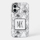 Black and white large flowers elegant seamless pattern monogrammed phone case.