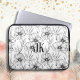 Modern Black and White Floral Monogrammed Laptop Sleeve