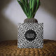 Modern and personalized decorative tile design featuring a seamless pattern in black and white with a black circle in the middle and your custom family name on it.