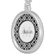 Modern Black and White Geometric Monogram and Name Silver Plated Necklace