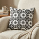 Elevate your next sewing or home décor project with this sophisticated geometric design. Inspired by classic encaustic cement tiles and Moroccan motifs, this pattern features a high-contrast black and white palette that fits perfectly into modern farmhouse, bohemian, or contemporary minimalist interiors. The design showcases an elegant quatrefoil and diamond lattice structure with unique faux-stitching details within the dark shapes, adding a textured, artisanal look to the print.