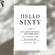 Celebrate a milestone in style with this modern black and white 60th birthday invitation. Featuring a bold “Hello 60” headline, clean typography, and a minimalist design, it’s perfect for setting the tone for an elegant yet fun celebration. Ideal for dinners, cocktail parties, or intimate gatherings, this invitation makes it easy to share the details of your special event with family and friends.