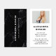 Modern, sleek, and minimal black and white business card design for a hair stylist or other professional features a photo to help with facial recognition. Customize the company information and employee contact information. Space to include an Instagram social tag and Venmo username for payment and tips. Card a stylish faux black marble texture on the back.