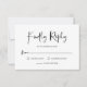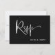 These modern, elegant black and white wedding response cards feature trendy script typography, and the back of the card is black with white casual script that says "rsvp" and your names.