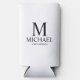 Modern Black and White Personalized Groomsman Can Seltzer Can Cooler