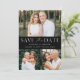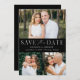 Elegant, multi-photo save the date featuring "Save the Date" displayed in white lettering with a black background. Personalize the modern QR save the date card with 3 of your favorite photos, your names, wedding date, and wedding location. The black and white save the date reverses to display your custom QR code with wedding website and custom text.