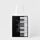 Modern Black and White Piano Keyboard Monogram Grocery Bag