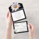 Modern Black and White Polka Dot Floral All In One Invitation