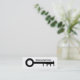 Modern Black and White Real Estate Key Logo Mini Business Card
