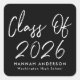 Add a personalized touch to your graduation envelopes, graduation party favors, and more with our class of 2026 graduation stickers. The modern graduation stickers feature the phrase "Class of 2026" in trendy white lettering on a black background (or color of your choice). Personalize the graduation envelope seals by adding the graduate's name and school name.