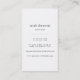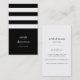 Modern and chic business card design in a unique vertical format features three wide white stripes on a classic black background, with your name and business name or title in an attractive mix of lowercase serif and modern caps typefaces. Add your full contact information to the back in matching black. Suitable for any occupation; example shown for boutique businesses.