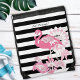 Modern Black and White Stripe Pink Flamingo Drawstring Bag
