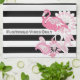 Modern Black and White Stripe Pink Flamingo Kitchen Towel