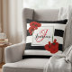 Modern Black and White Stripe Red Poppy Monogram Throw Pillow