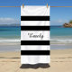 Modern Black And White Stripes Pattern Name Beach Towel
