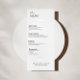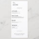 Elevate your wedding reception tables with this sleek black and white dinner menu. Featuring minimalist typography and a clean layout, this design complements modern, formal, and black-tie wedding styles. Personalize it with your menu selections and event details to give guests a stylish first look at the evening’s offerings.