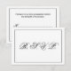 Elevate the essence of your wedding with our 'Modern Black and White Wedding RSVP' card. Crafted with a refined aesthetic, this invitation features an elegant script font delicately arranged on a pristine white canvas, exuding timeless sophistication. The simplicity of the design is accentuated by a sleek, black-lined border encasing the card, adding a touch of understated elegance. Perfectly curated for contemporary couples seeking refined simplicity, our RSVP card offers a seamless blend of modern aesthetics and classic charm, setting the tone for a stylish celebration. Embrace the allure of monochrome elegance and effortlessly capture the essence of your special day with this exquisite RSVP invitation.