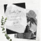 Theme Parties' modern Save the Date design features an angled photo cutout and your engagement photo as the back drop to your engagement announcement -- giving your Save the Date a modern geometric look. Your engagement photo is automatically converted to black and white and repeated on the reverse side. The design is accented with hand-lettered typography paired with modern block text. #SaveTheDate #ModernWedding #PhotoSaveTheDate