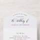 Elegant All-in-One Wedding invitation with perforated RSVP. Environmentally friendly as there is no need for extra insert cards, RSVP cards or even envelopes, this invitation has it all! Ability to add both Wedding Ceremony and Reception details, as well as RSVP postcard ready for guests to fill in and mail! Elegant black and white minimalist design with modern hand written calligraphy details. Option to order invitations with printed (or hand write later) guest name on the back so you can mail it with no need of envelopes. If you prefer to use envelopes, simply erase guest name and address characters from text boxes to remove. Attractive design ideal for the elegant, yet practical and eco-friendly couple!
