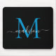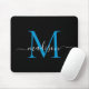 Modern Black Ocean Bright Blue Monogram Elegant Girly Script Mouse Pad