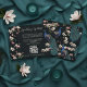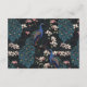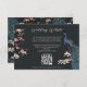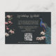 This Modern Black Blue Peacock Website QR Code Enclosure Card features hand-drawn blue and teal peacock bird and magnolia flowers and an elegant floral and bird pattern on the back, all against an elegant almost black background. All text is editable.