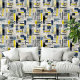 Modern Black Blue Yellow Cross Hatched Pattern Wallpaper