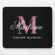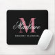 Modern Black Blush Pink Monogram Script Mouse Pad