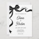 This modern black bow invitation blends a clean minimal layout with an elegant ribbon illustration for a simple and stylish wedding look. The bold contrast of black against white creates a crisp, timeless feel that works beautifully for classic, contemporary, or black tie celebrations. The text is fully editable, and you can also change the bow color to suit your palette, making it easy to personalize this card for your day. This design coordinates with matching pieces in the suite to carry the same modern bow aesthetic throughout your event.