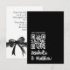 Keywords: wedding stationery, QR code, gift registry, customizable, black background, watercolor bow, romantic, personalized, convenient, chic.